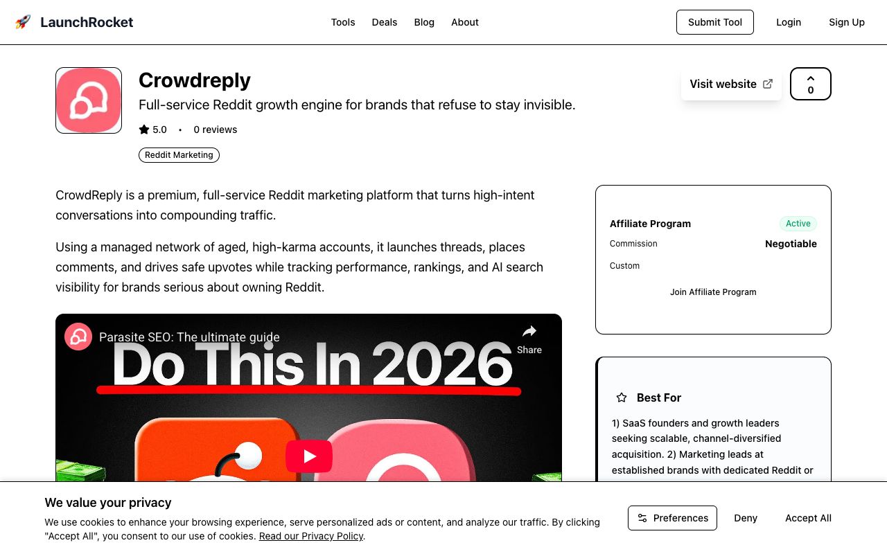 While not strictly a Reddit-only tool, LaunchRocket.io is the most comprehensive solution for establishing the off-site SEO signals that make your Reddit marketing successful.