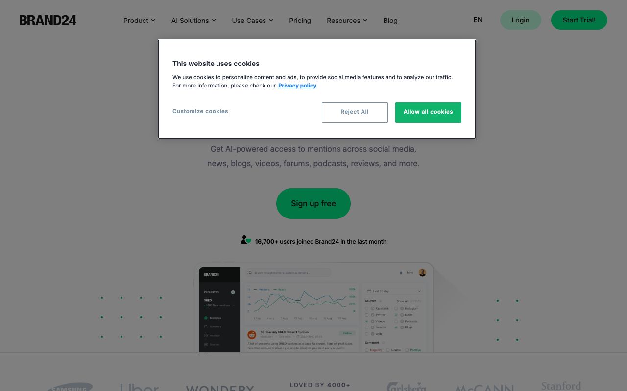 Brand24 is a heavyweight social listening platform that covers Reddit along with X (Twitter), Facebook, and news sites.